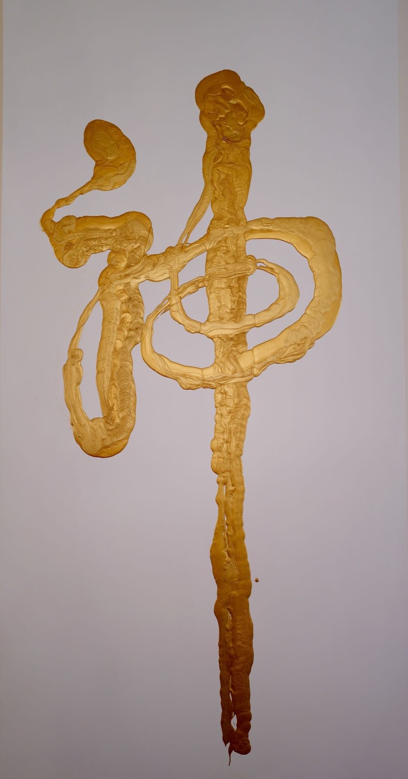 二、遛金立体书法,天成肌理,妙不可言! 云缠雾绕,万象丛生!