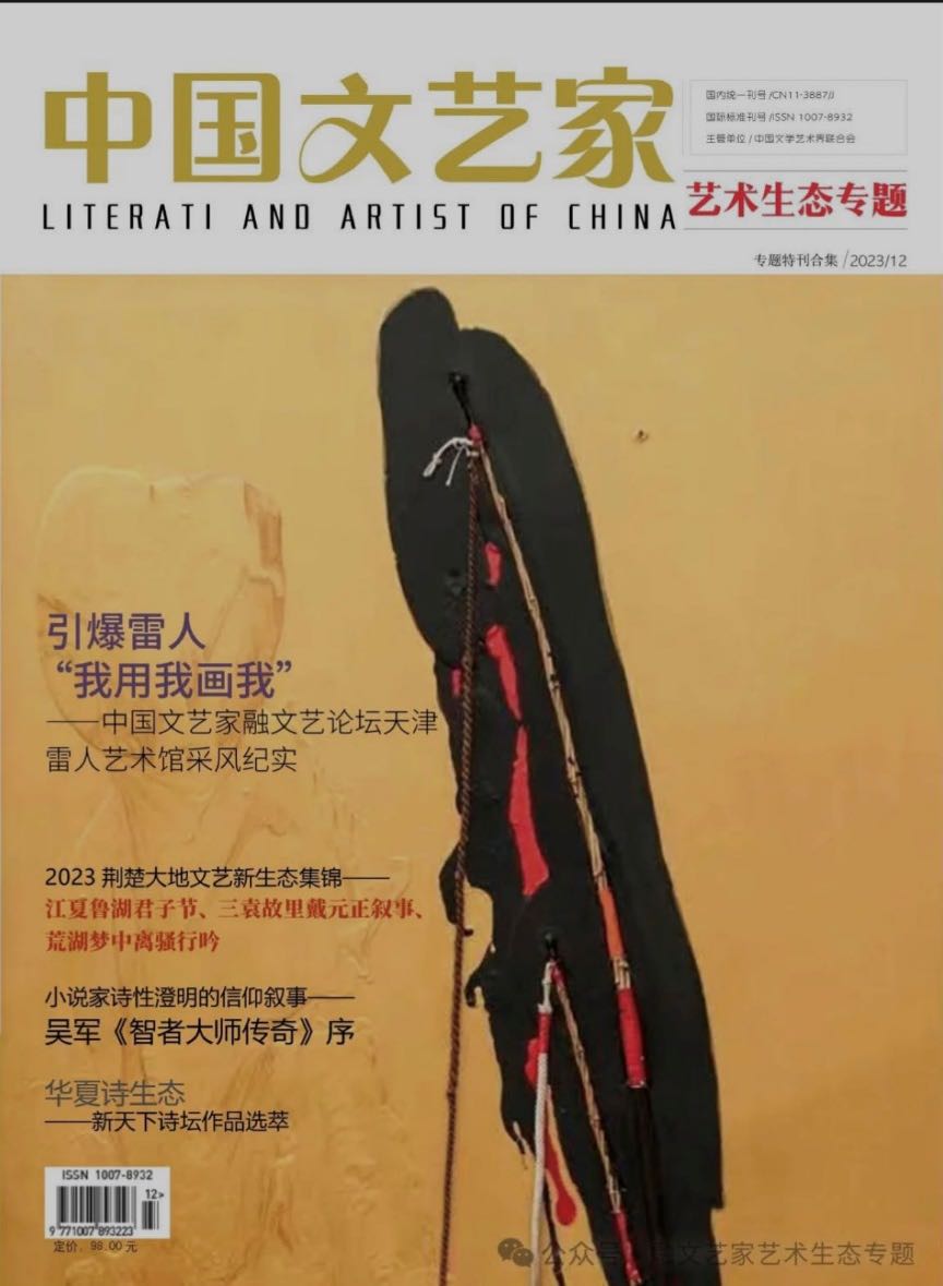 中国文艺家 2016.01期 封面人物,标题是:诗性的崛起——记60岁绽放的桂冠诗人雷人。