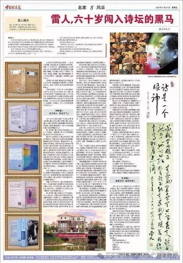 雷人先生也经常在自我介绍时调侃地说“我姓雷,我是人,所以,我叫雷人” 雷人的人生大跨界大成功的传奇,确实是这样的印证。是“雷人雷诗雷天下”,事事惊人。
