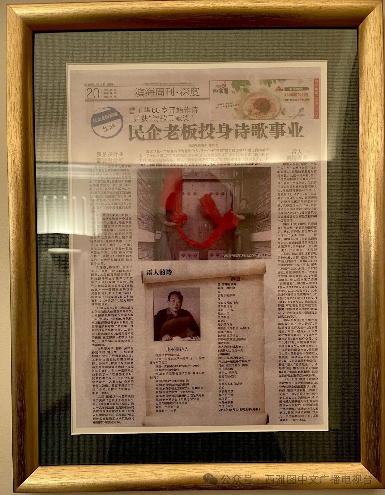 天津渤海周刊报道:雷人获中国诗歌学会“中国诗歌贡献奖” (2014)