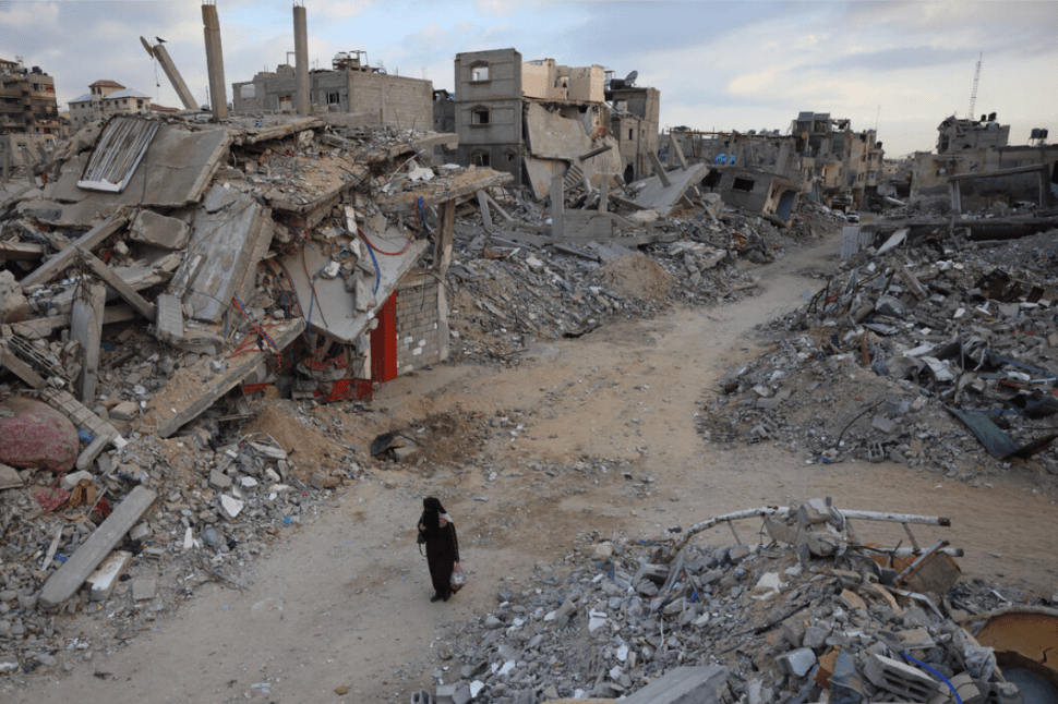 (在加沙地带南部的汗尤尼斯,被摧毁的建筑物。Bashar Taleb/Agence France-Presse — Getty Images)