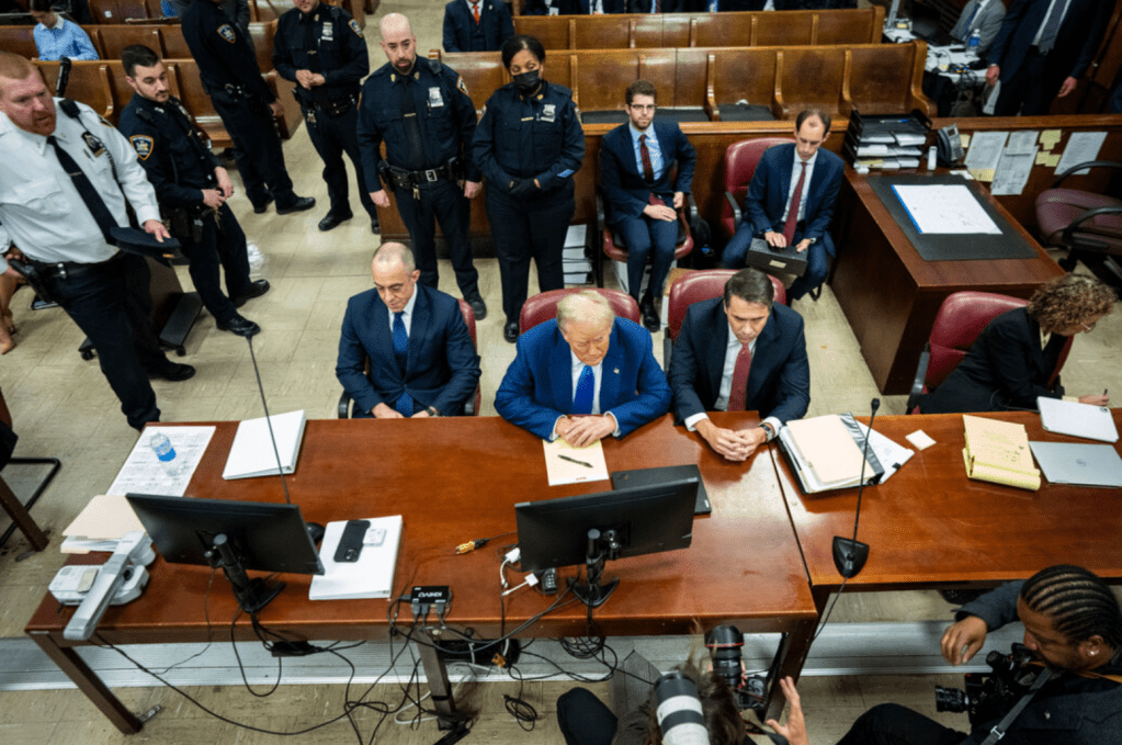 (特朗普在第三次竞选总统期间被判犯有34项重罪。Doug Mills/The New York Times)