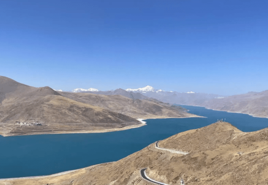 上盘山公路去羊卓雍措(羊湖)那天,大家都背了氧气袋,山顶海拔4998米,谭导和司机也带了,他们长久呆西藏的人也仍会高反。羊湖因形状像羊蝎子而得名,在湖边的任何一个位置都看不到它的全貌。在湖岸的旷地上我追赶着一群鸟起飞,牦牛悠然在荒草里觅食,而水鸟则随着湖水的微波轻轻荡漾。西藏有1500多个湖泊,有人称在西藏旅游是“一措再措”,措就是湖的意思。湖底丰富的矿物质折射出不同的蓝色,因此“西藏没有海,却拥有了世界上所有的蓝。”