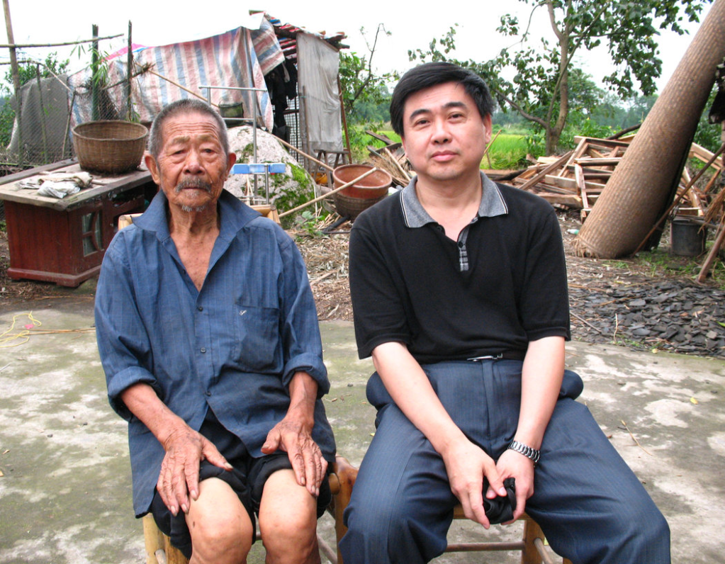 (谭松采访著名地主刘文彩的长工龙万福。2009年8月,摄于四川省大邑县苏家镇虹桥村。 Courtesy of Tan Song)