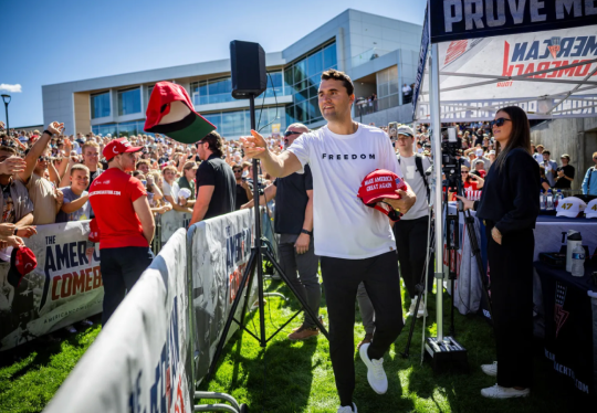 (查理·柯克周三在犹他州奥勒姆的犹他谷大学。Photograph by Tess Crowley / The Deseret News / AP)