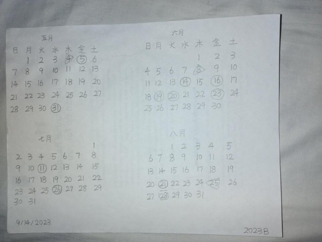 (拘留所内的手写日历。 Tao)