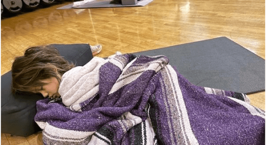 (带着女儿去练阴瑜伽,结果她睡着了)