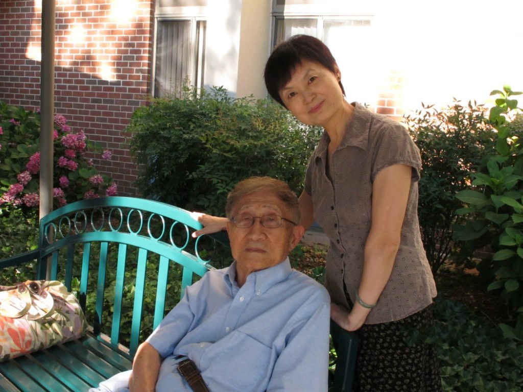(2011年,本文作者与巫宁坤在他居住的老年公寓楼下合影。巫宁坤称这里为“一室一厅藏拙处”)