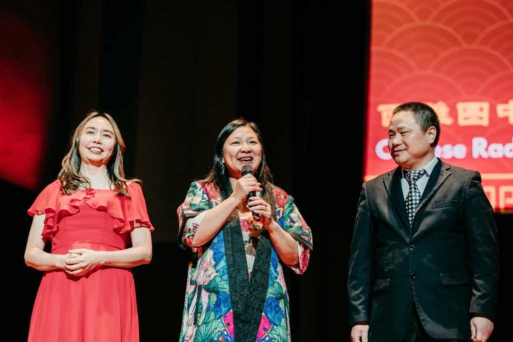 宛儒艺术中心创始人、Mercer Island市议员谢宛儒与华盛顿州众议员蔡美玲在演出开始前登台致辞,肯定西雅图中文电台在推动文化交流、丰富城市多元文化生活方面所作出的贡献,并祝愿观众马年快乐、万事顺遂。