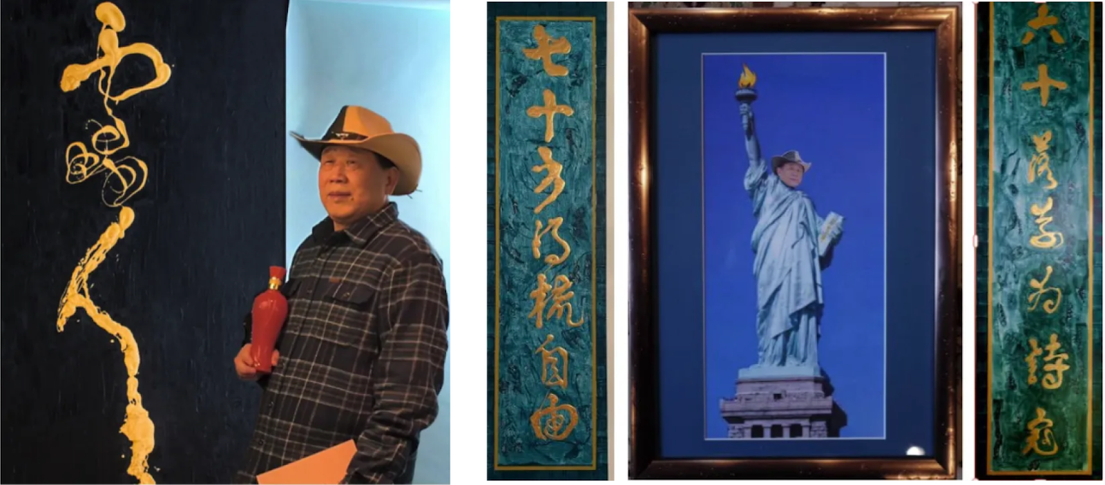 立体书法的创始人雷人(左)、落户美利坚的自由男神,六十落草为诗寇,七十方得梳自由(右)